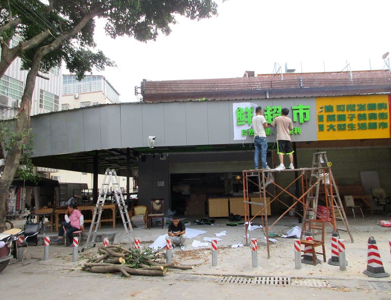 | 这家商业街一号楼东南角新装的佳嘉生鲜超市,今天看到终于也在安装招牌了 | ||||||