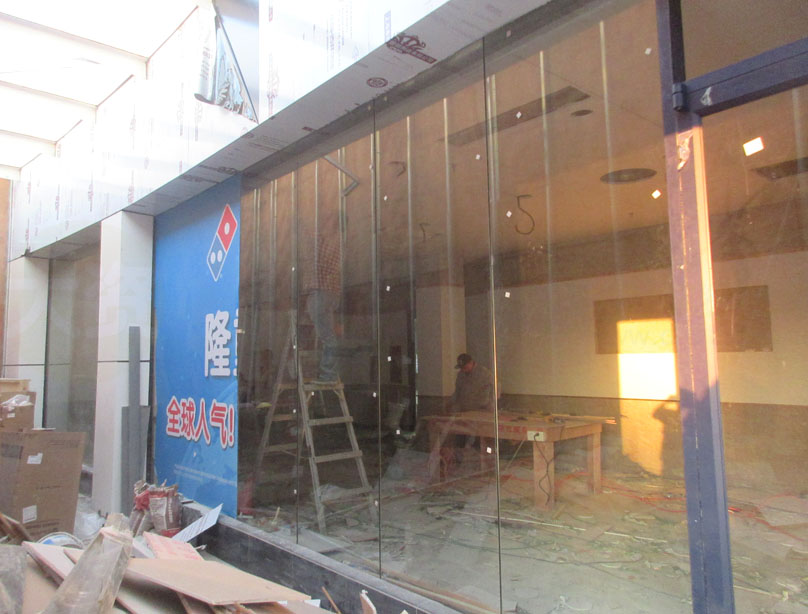 | 达美乐披萨店的装修也看到内里的店面形态进度了 之前都还是整体围蔽的 | ||||||