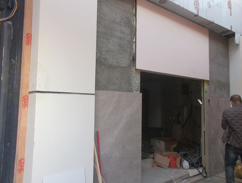 达美乐披萨店的装修也看到内里的店面形态进度了 之前都还是整体围蔽的