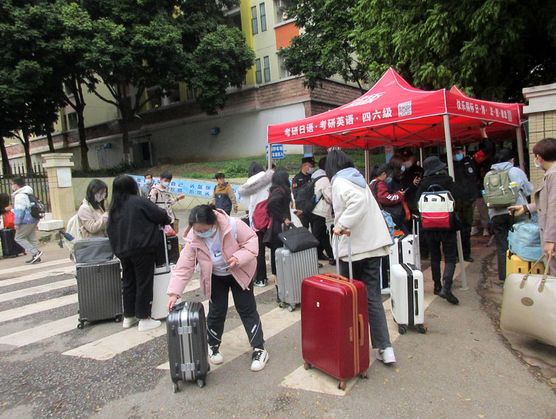 今天华师(省内)学生春季开学返校,华师一路整段车流拥挤,相较昨天省外的小部分,今天生活区周边道路和生活区内都明显人群骤增,随处可见拖拉杆箱和提背包情景