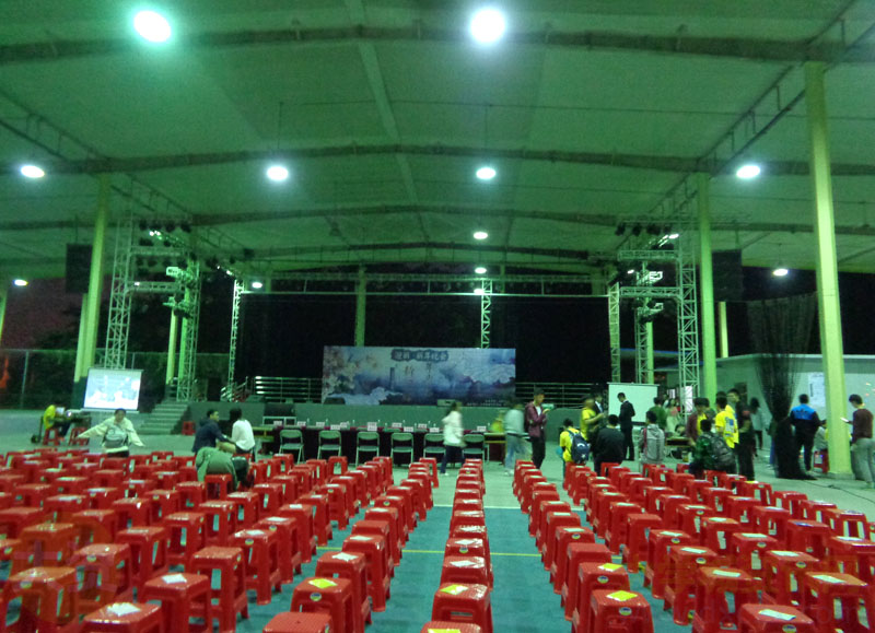 公共管理学院迎新?新年晚会正在风雨球场彩排布场预备工作