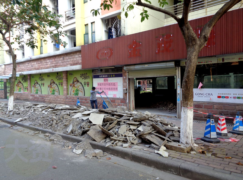 南苑3栋金茂源超市升级改造施工已进行一周目前仍在拆运废旧阶段