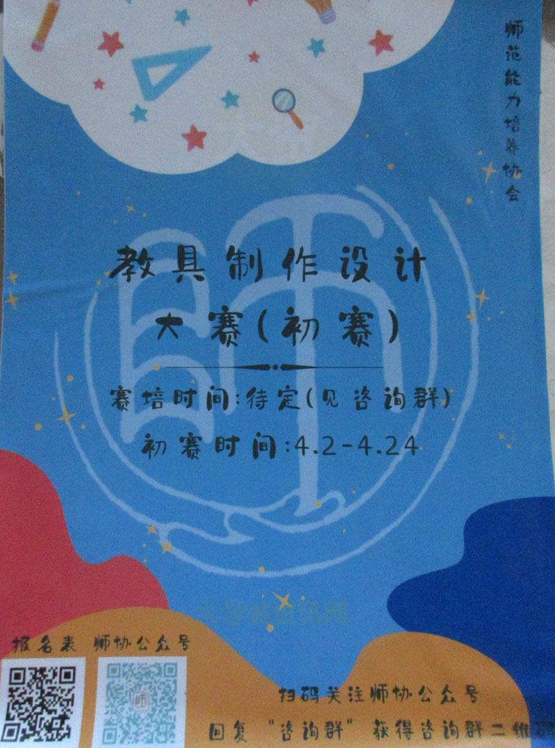 师范能力培养协会·教具制作设计大赛(初赛) 赛培时间待定 初赛时间4.2-4.24
