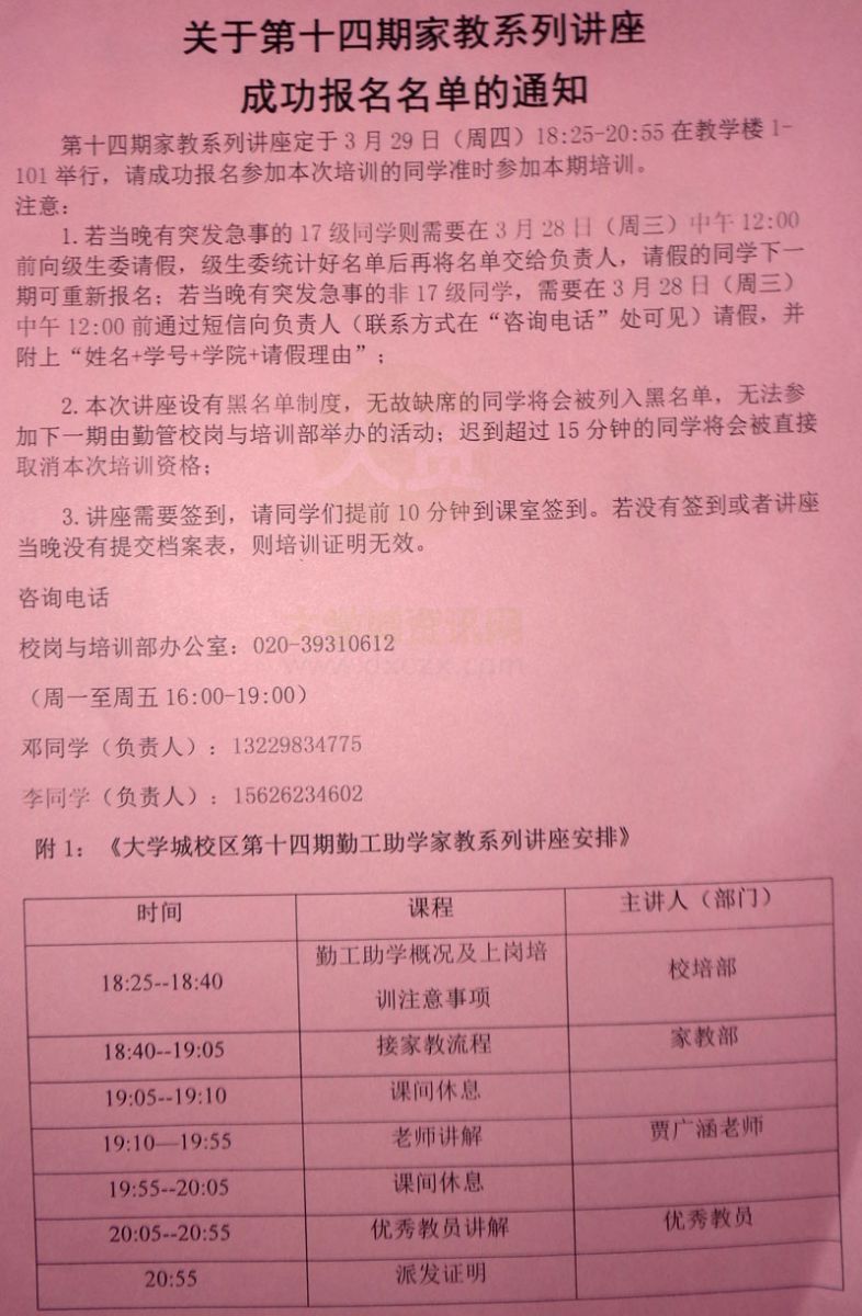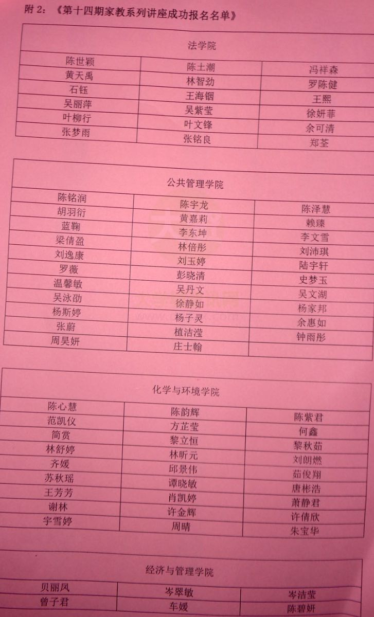 关于第十四期家教系列讲座成功报名名单的通知