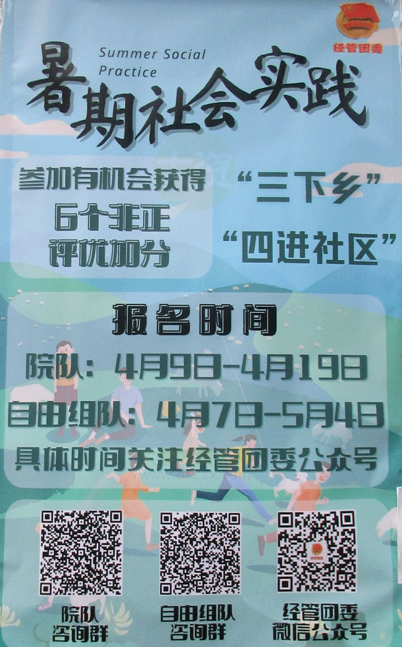 经管团委·暑期社会实践 三下乡 四进社区 院队报名4.9-4.19 自由组队4.7-5.4