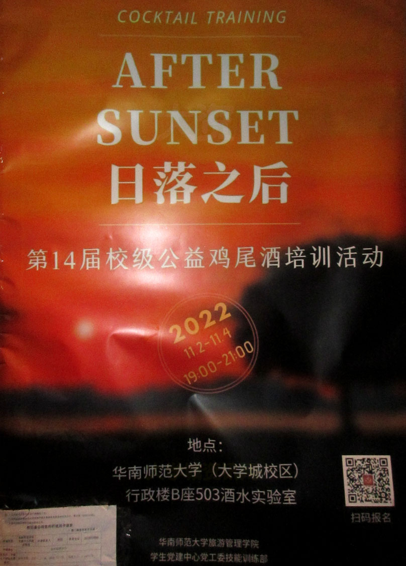 日落之后·第14届校级公益鸡尾酒培训活动 2022.11.2-11.4晚上19点-21点 教学区行政楼B座503酒水实验室 扫码报名
