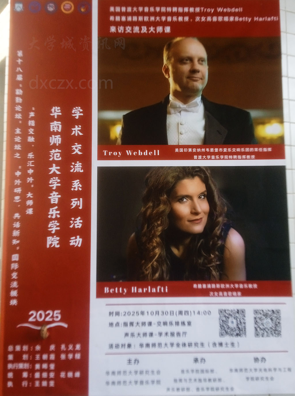 华南师范大学音乐学院-国外音乐教授来访交流活动 2025.10.30周四下午14点 交响乐排练室 学术报告厅