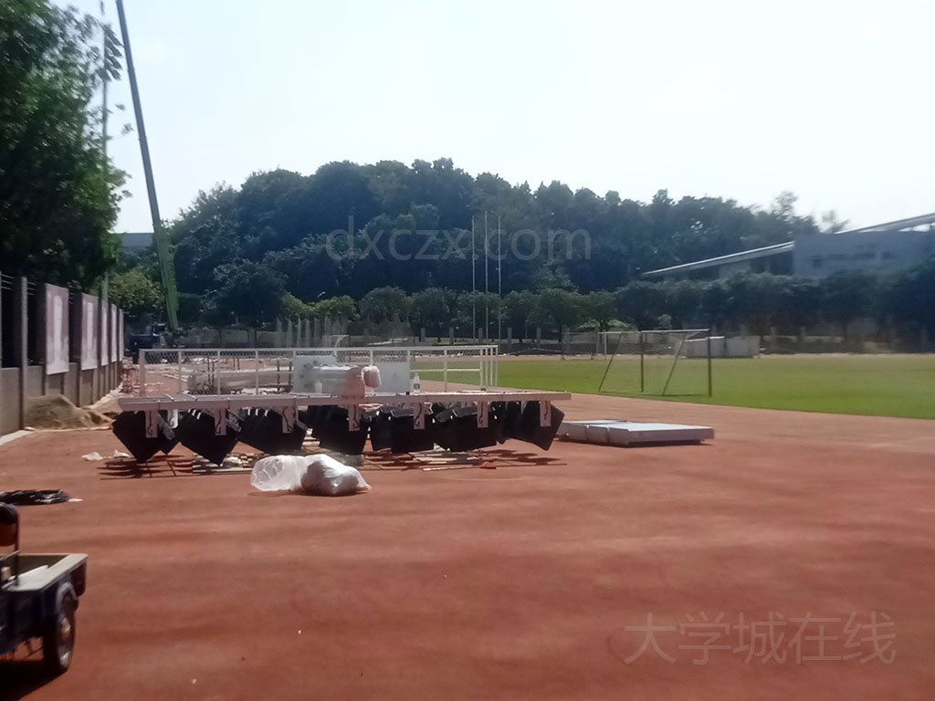华师教学区体育场临中环侧-似乎在装两个夜晚使用的大型探照灯