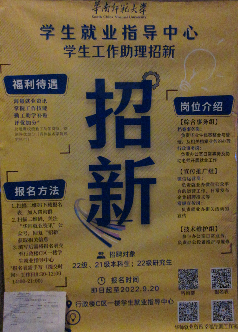 华师学生就业指导中心 学生工作助理招新 福利待遇 岗位介绍 报名方法 招聘对象22级21级本科生22级研究生 时间即日起至2022.09.20