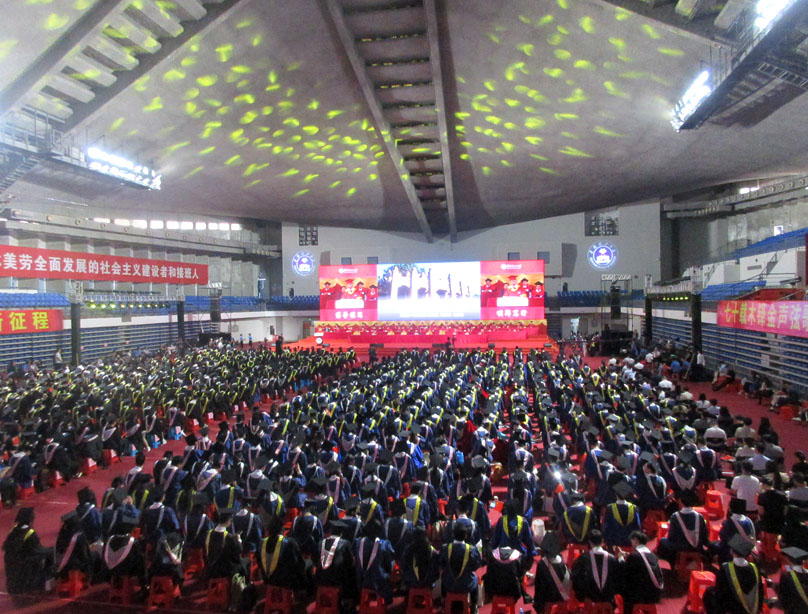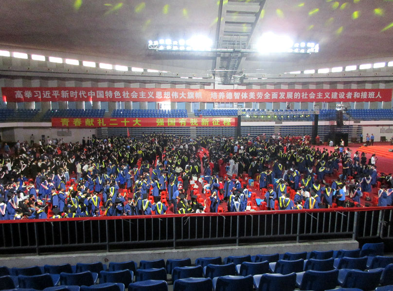 整个典礼仪式主会场就是画面看到的大学城华工体育馆,在五山校区、国际校区和学术大讲堂/音乐厅等设有分会场