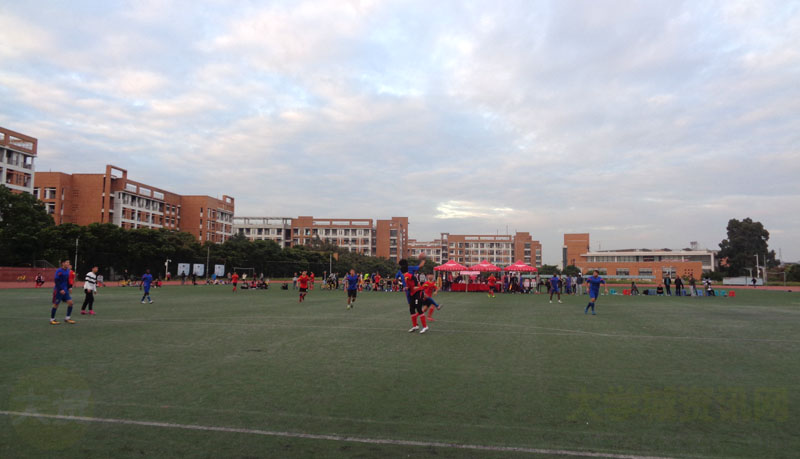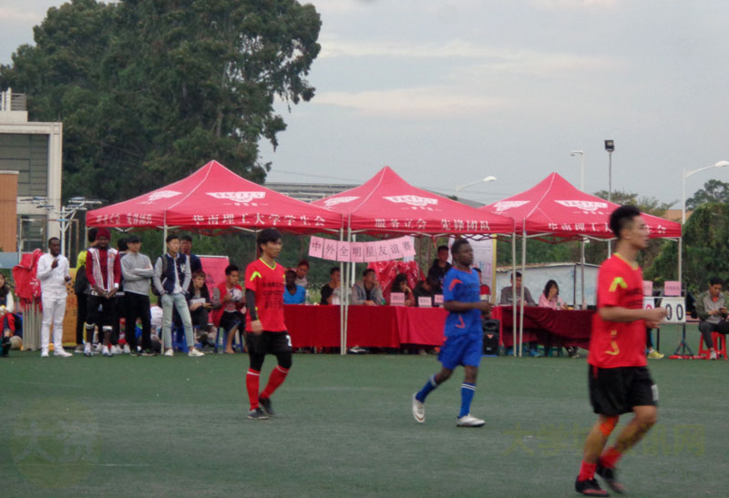 华工学生会体育部组织的足球中外全明星友谊赛下半场赛事正在生活区进行