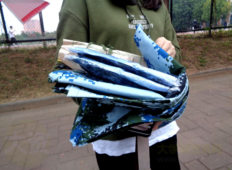 军训两件套120元,包括一双鞋、袜子两双、帽子、皮带、两个内衬、各两件上下衣服裤子