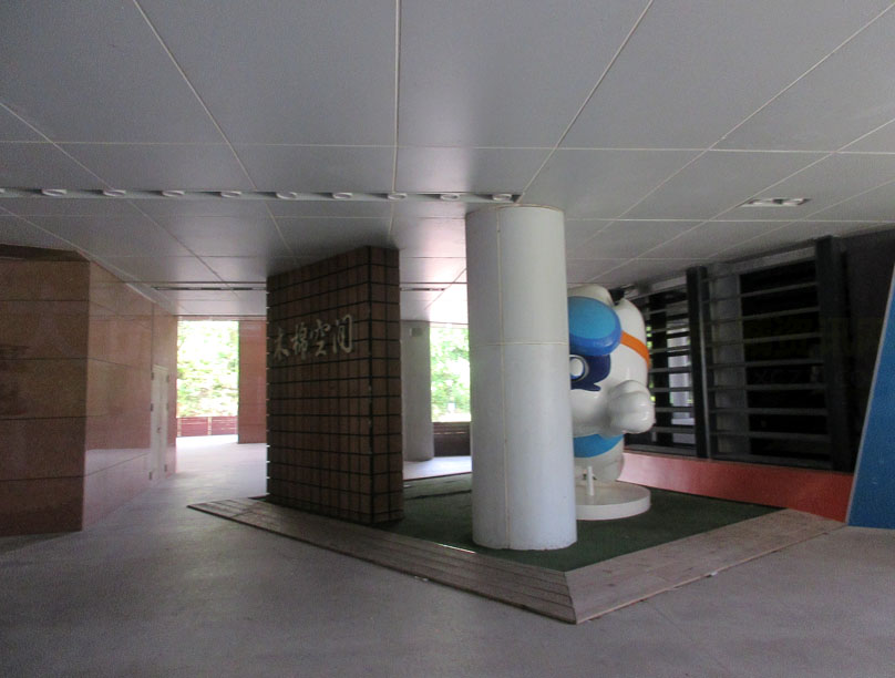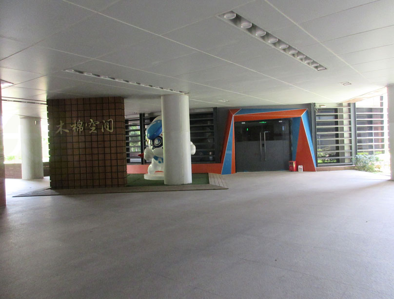 是因为放假了吗,图书馆钟点咖啡厅外木棉空间的桌椅凳全部搬走了