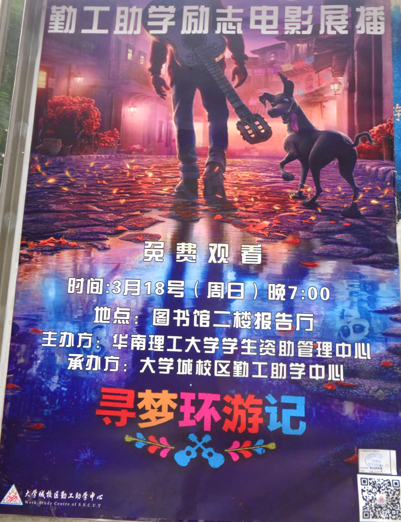 勤工助学励志电影展播《寻梦环游记》3月18号晚7点