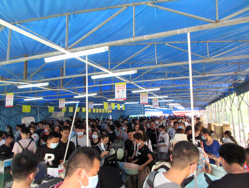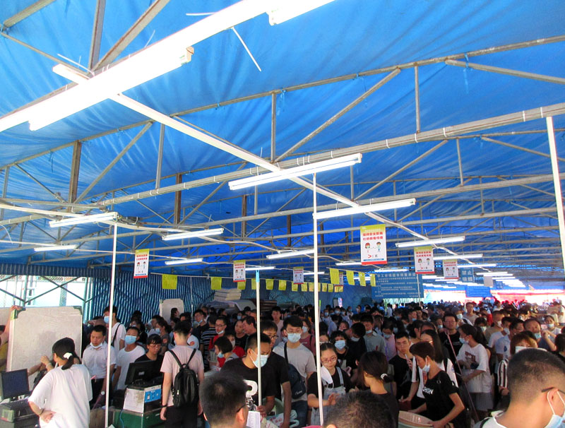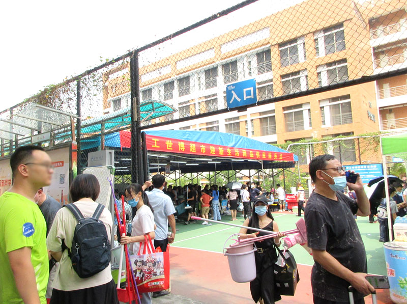 世博超市排球场的临时卖场,购买生活用品的真的是非常火爆了
