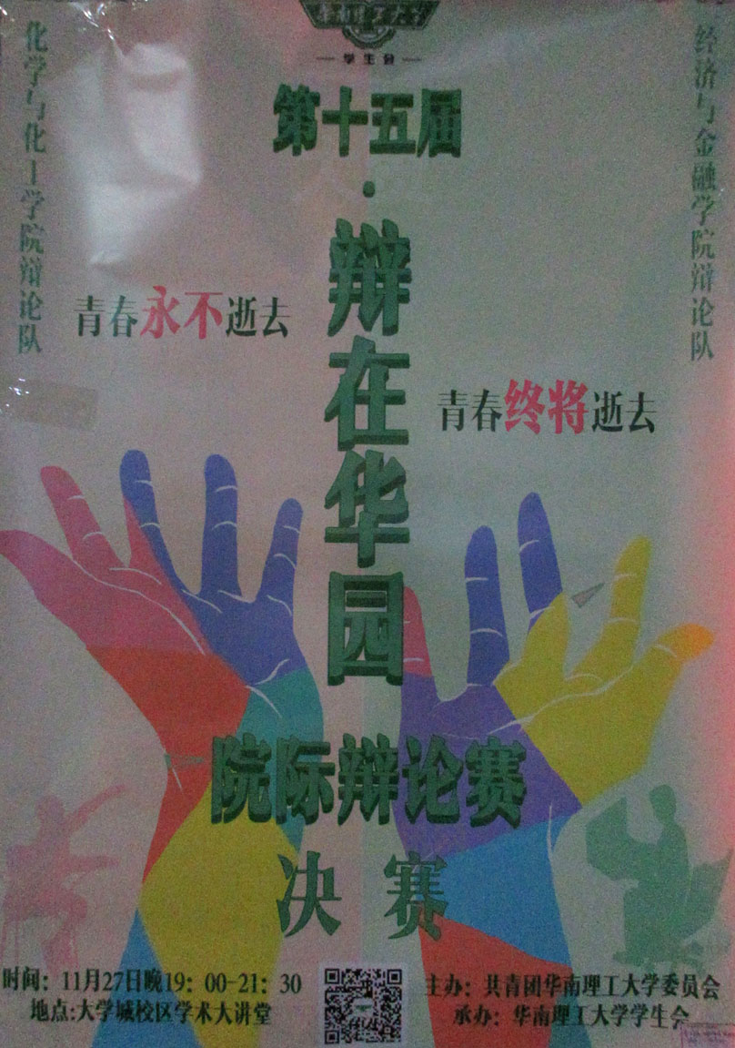 华工 活动预告 第十五届辩在华园院际辩论赛决赛(化学VS经金)11月27日晚 学术大讲堂