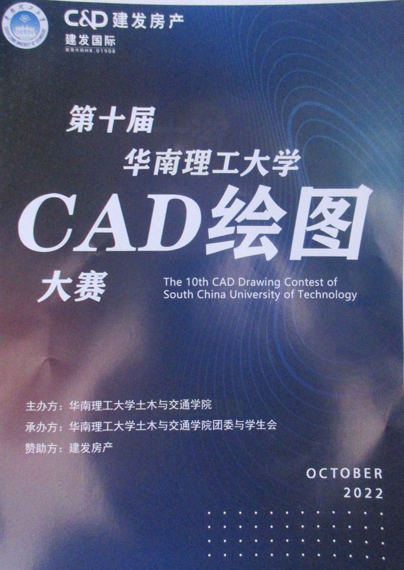 华南理工大学第十届CAD绘图大赛 赛前培训会&开幕式-2022年10月22日19点-21点 线上进行 趣味设计组: 初赛-11月5日22点前提交作品,前16名进入复赛 复赛-11月19日参加答辩,详细信息会于大赛QQ群通知 CAD专业组:比赛形式-11月5日下午现场考试 奖项设置:两组别均设一二三等奖和优胜奖,都有相应奖金和证书及德育分 赞助方:建发房产