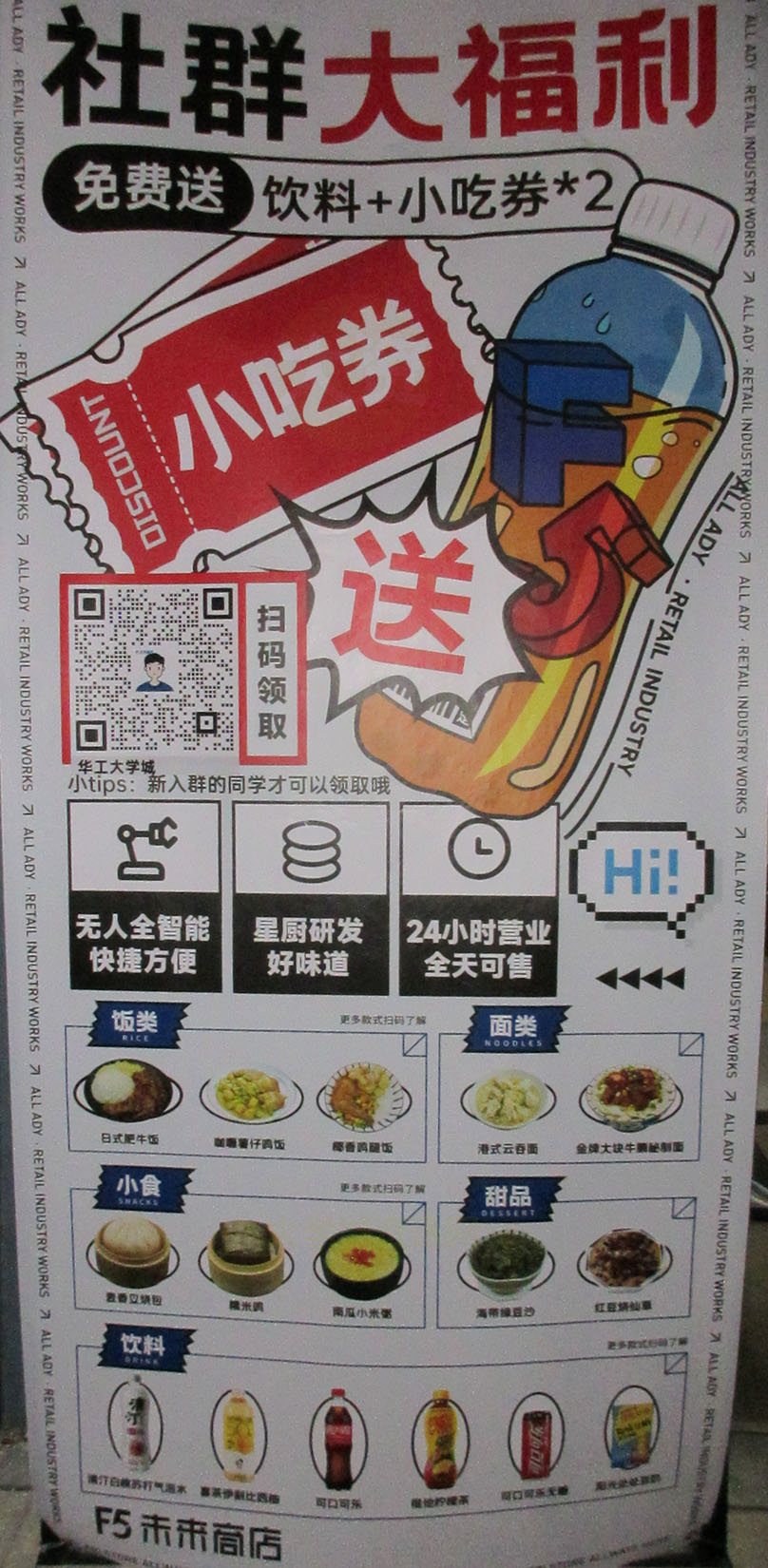 华工生活区D4栋西南 F5未来商店 社群大福利 免费送饮料+小吃券 扫码新入群的才可以领取