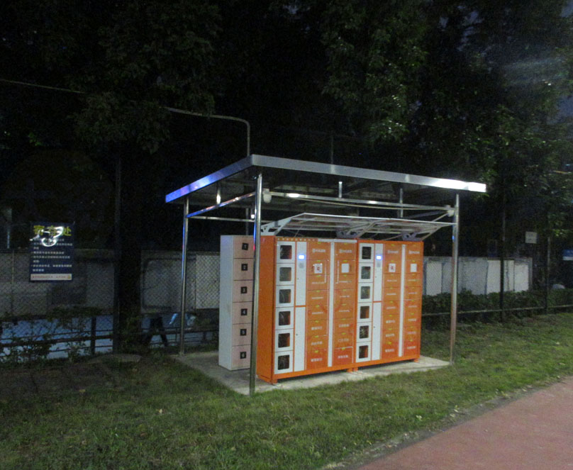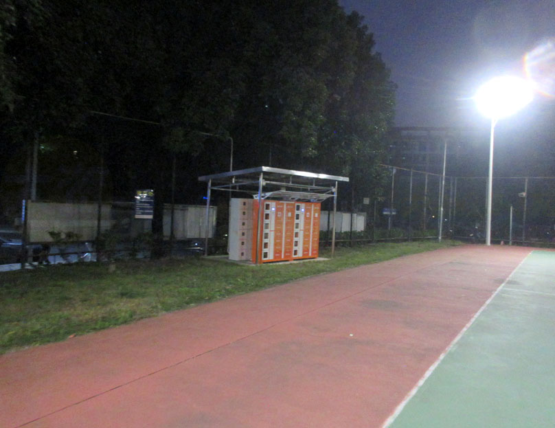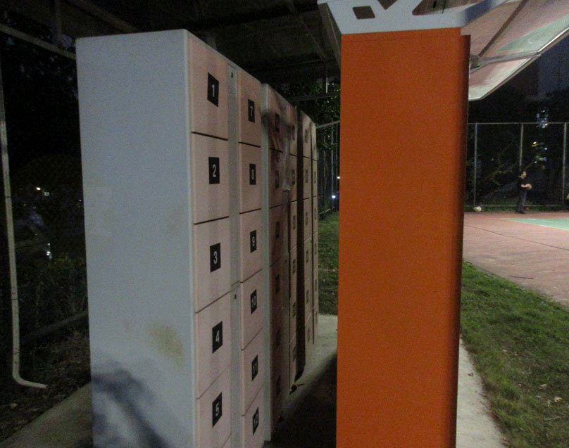 华工二饭篮球场看到新装的这个手机存储柜 会不会有点遮挡到了原来后面旧的,还是这个旧的已经废弃不用了
