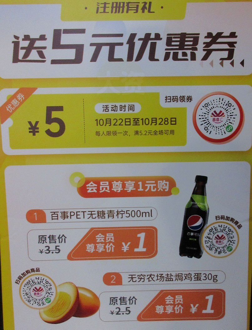 华工生活区-南商业楼 西亚兴安超市 注册会员送5元优惠券 10.22-10.28 每人限一次,满5.2元可用