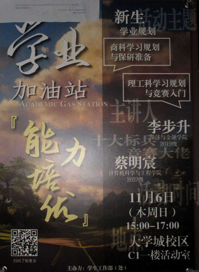 学业加油站,能力培优 新生学业规划讲座 商科学习规划与保研准备&理工科学习规划与竞赛入门 11月6日周日下午15点-17点 C1一楼活动室