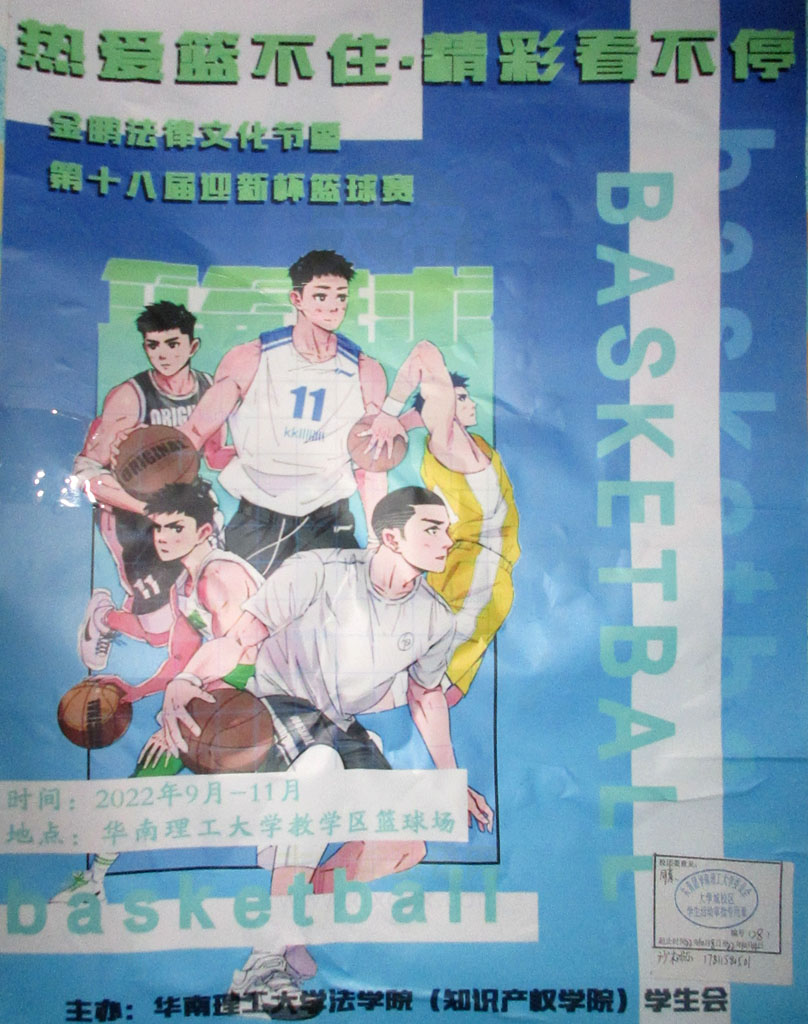 热爱篮不住·精彩看不停 金鹏法律文化节暨法学院第十八届迎新杯篮球赛 2022.9月-11月 教学区篮球场 |